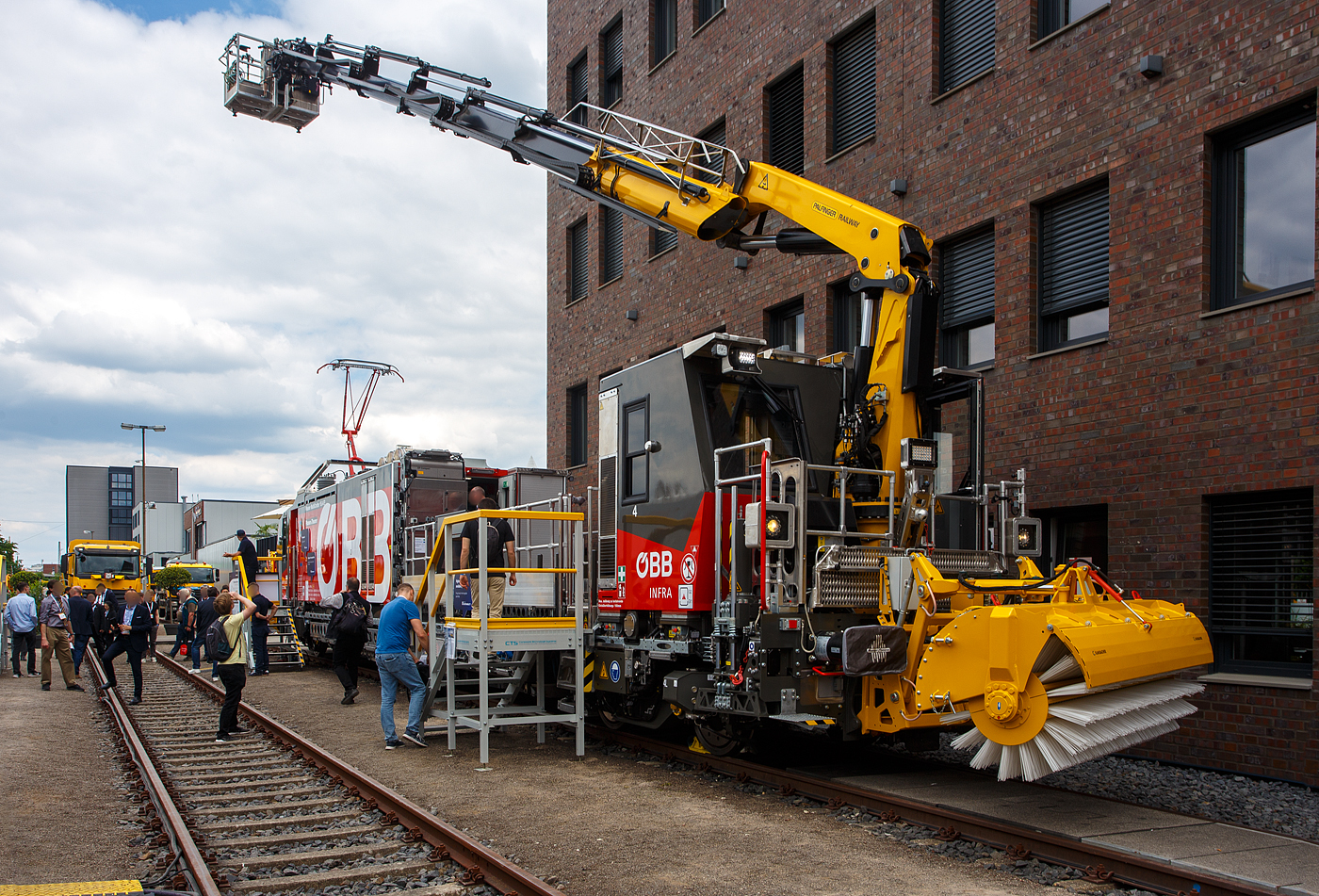 • Plasser CatenaryCrafter 15.4 E³ (Typ 2), spezialisiert auf die Instandhaltung von Oberleitungsanlagen, bei der ÖBB als X720 geführt.