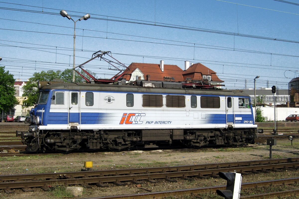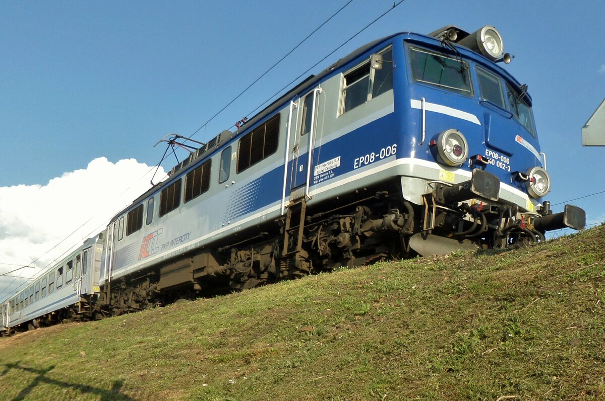 Die EP 07 – 400 (91 51 1 140 090-8 PL-PKPIC) der PKP Intercity, ex PKP EU07-400, am 25 Juni 2017 im Hauptbahnhof Posen (Poznań Główny) mit dem TLK 56134 von Wrocław Glowna via Gdańsk (Danzig) nach Gdynia Glowna / Gdingen Hbf (von 1939–1945 Gotenhafen bekannt), eine Hafenstadt in der Danziger Bucht (Polen).