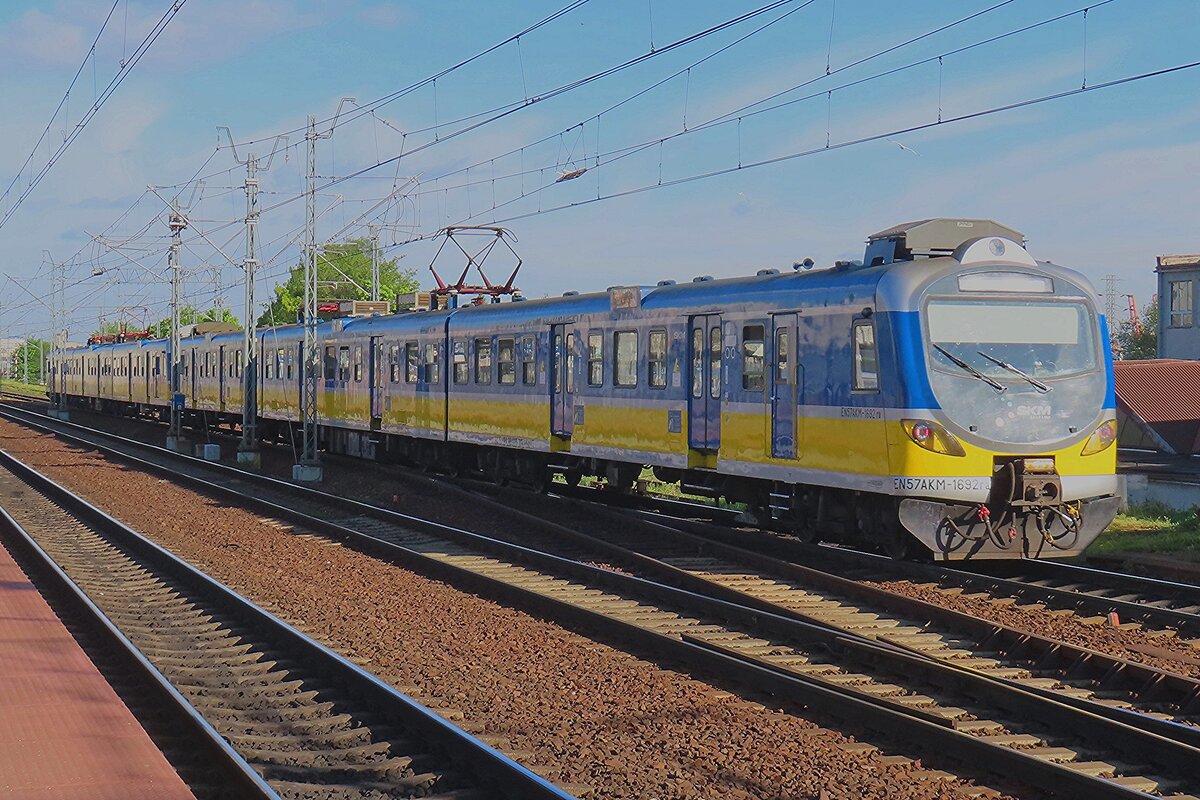 Die Baureihe EN57 ist eine Baureihe dreiteiliger elektrischer Triebwagen ursprünglich der Polnischen Staatsbahnen (PKP). Seitdem der Nahverkehr aus diesen herausgelöst wurde, fahren sie für die jeweilige Nachfolgegesellschaft, hauptsächlich Przewozy Regionalne, teilweise (wie hier) erheblich modernisiert.