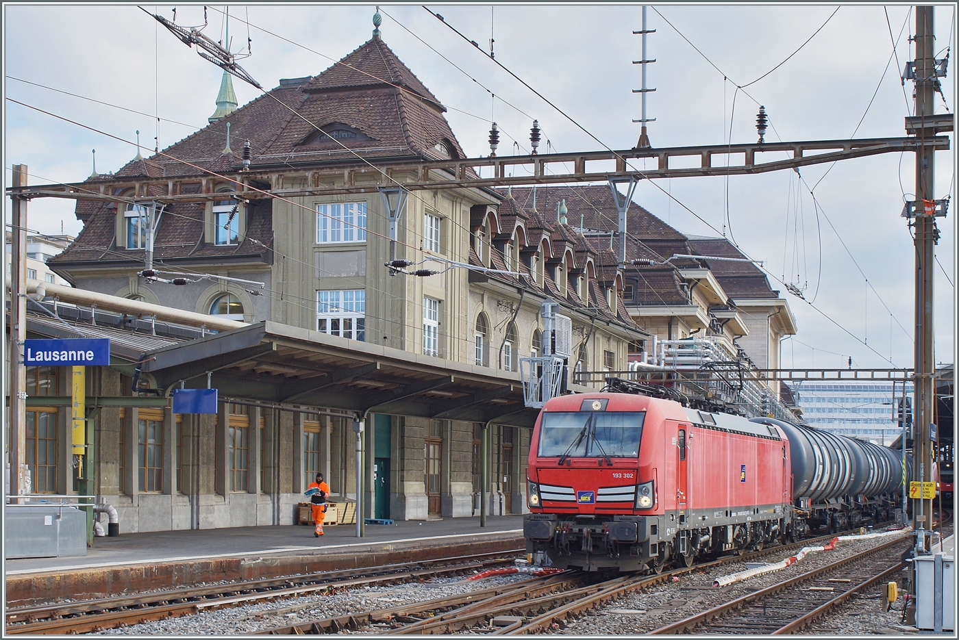 Seit einiger Zeit kann ich mich ja nicht mehr über einen Mangel an Vecrton-Loks in unserer Gegend beklagen, aber eine so schöne blaue Lok lohnte dann doch ein Bild: die 193 046 (91 80 6193 046-0 D-DISPO) wartet in Lausanne mit einem Güterzug auf die Weiterfahrt in Richtung St-Maurice.