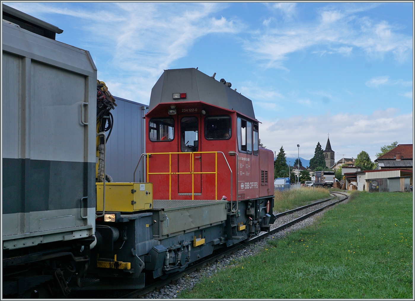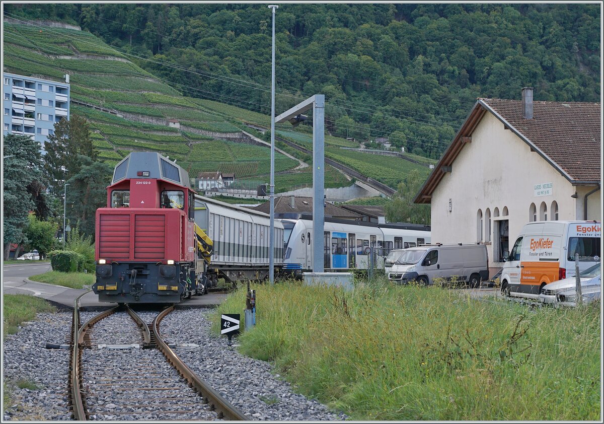 Beim Château de Chillon ist der SBB Tm 234 113-9 "Ameise" auf der Fahrt in Richtung Vevey.