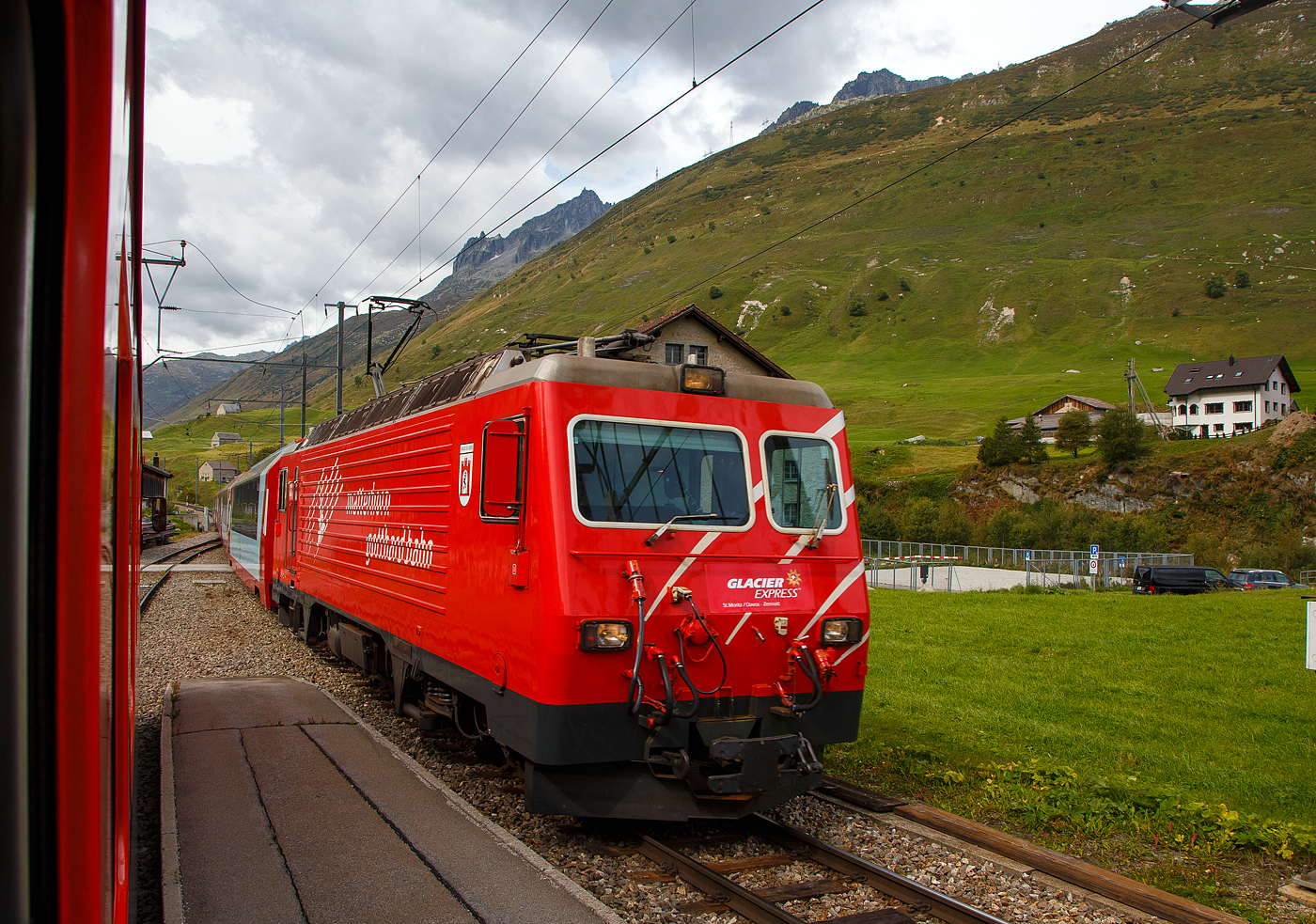 Die Zentralbahn HGe 4/4 II 101 966-0 wartet mit einem kurzen Dienstzug in Meiringen auf die Abfahrt.