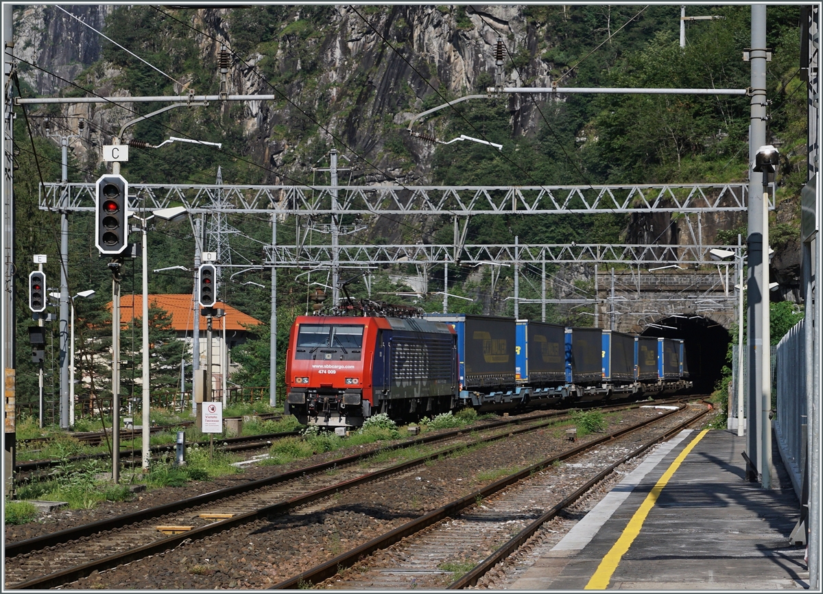 Die SBB Re 474 014 mit einem Güterzug bei San Nazzaro.
