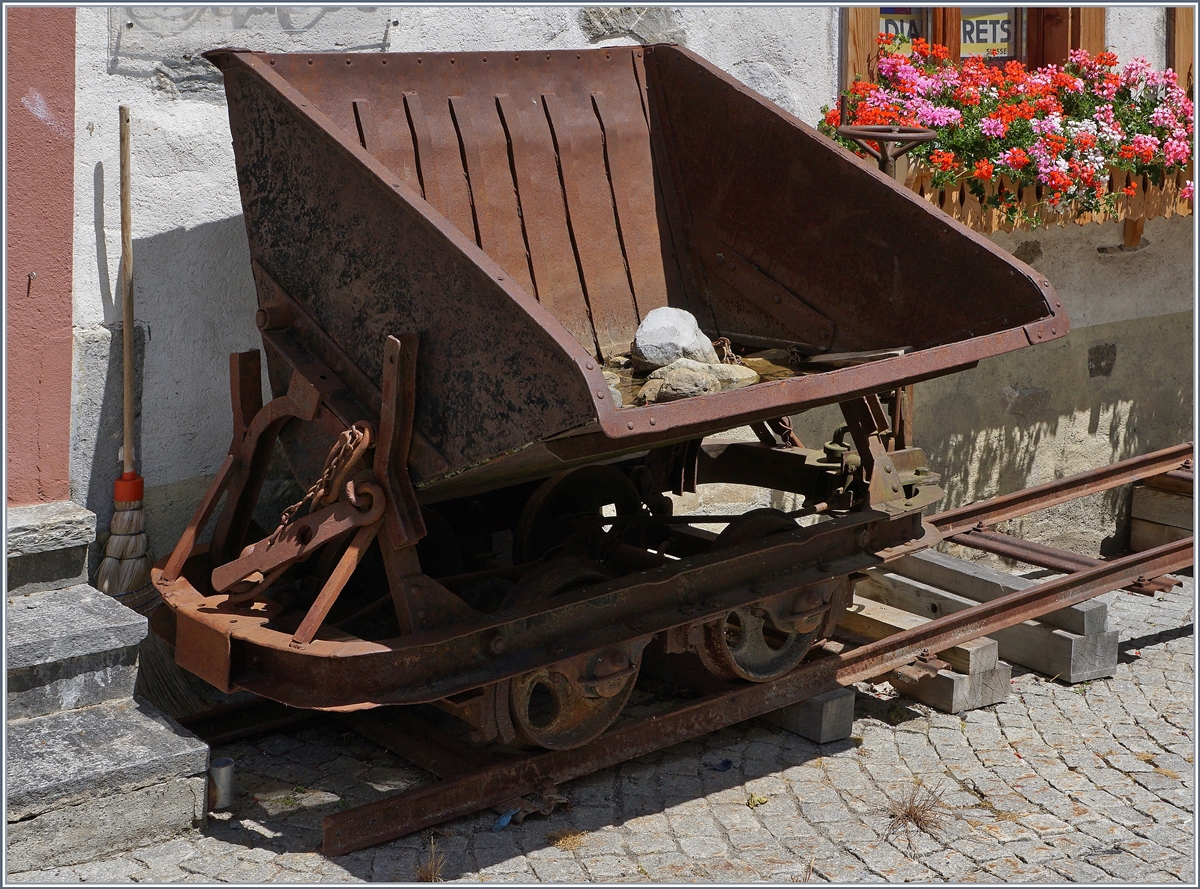 Ein einzelner Wagen der Feldbahn oberhalb des Bahnhofs von Wassen.