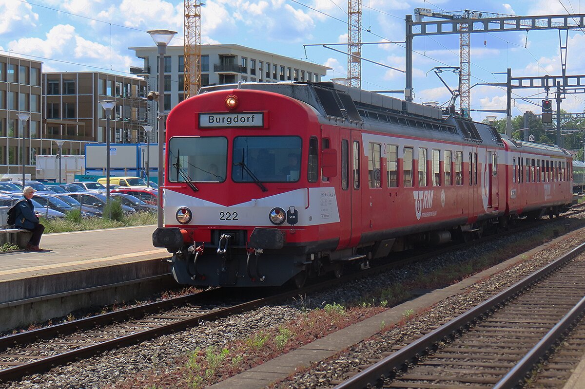 RM, später BLS, heute BLS Historic 566 222 verlasst als Extrazug Burgdorf nach Konolfingen am 17 Mai 2025 während das herrlichen Spektakel "150 Jahre Emmentalbahn".