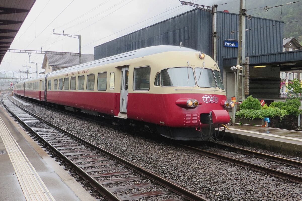 ja, eine Re 4/4 II wurde dem schöne Zug vor die Nase gesetzt, das der RAe II (noch) nicht über ETCS verfügt. "Leider" habe ich auch ein altes Bild bei welchem eine Re 6/6 einen TEE II Zug zieht, da er defekt war (aber immerhin konnten die Reisenden so weiterfahren).