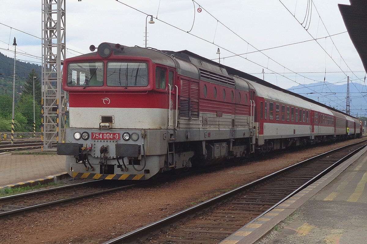 Lok 754 003-2, (SK-ZSSK 92 56 1 754 003-2), steht mit ihrem Zug im Bahnhof von Bratislava. 05.06.2023