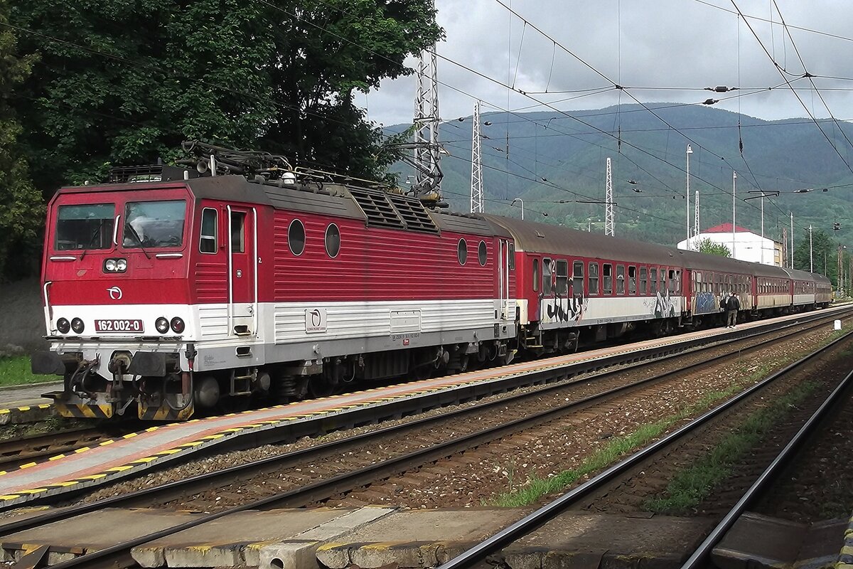 ZSSK 162 002 halt am 30 Mai 2015 in Vrútky mit ein Osobni nach Rozumborek. Die meiste Osobni-Leistungen sind bei der ZSSK fest im Hande von neue Triebzüge.