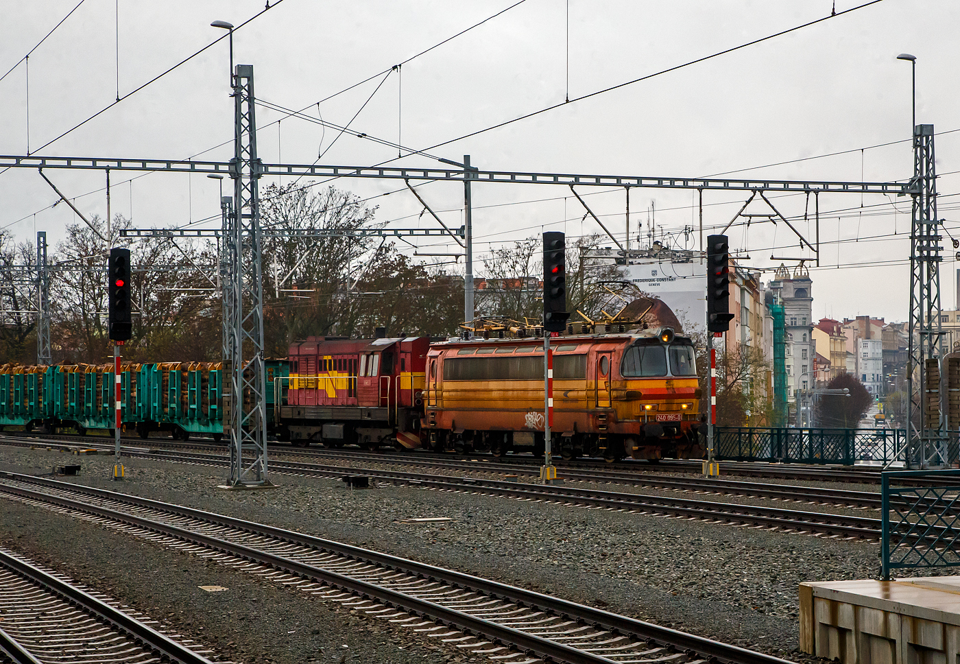 Wir erreichen am 24.11.2022 mit dem EC 360 / Ex 6 (Praha – Plzeň - Furth i.W. - Schwandorf – Regensburg – München) nun den Bahnhof Doma¸lice (Taus) an der „Böhmische Westbahn“ Bahnstrecke Plzeň–Furth im Wald (S´DC 180), während rechts die ZSSK Cargo 751 173-6 als Lz über die Bahnstrecke Janovice nad Úhlavou–Doma¸lice (S´DC 185) ankommt.