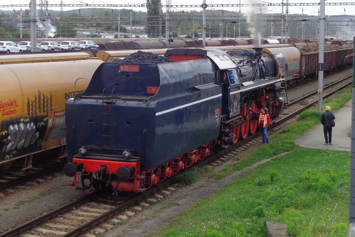 Dampflok 498.104 „Albatros“ fährt durch den Bahnhof von České Budějovice (Budweis) um sich vor den nächsten Zug zu setzen. Aufgenommen beim Bahnhofsfest in Budweis. 22.09.2018 Hans und Jeanny De Rond
