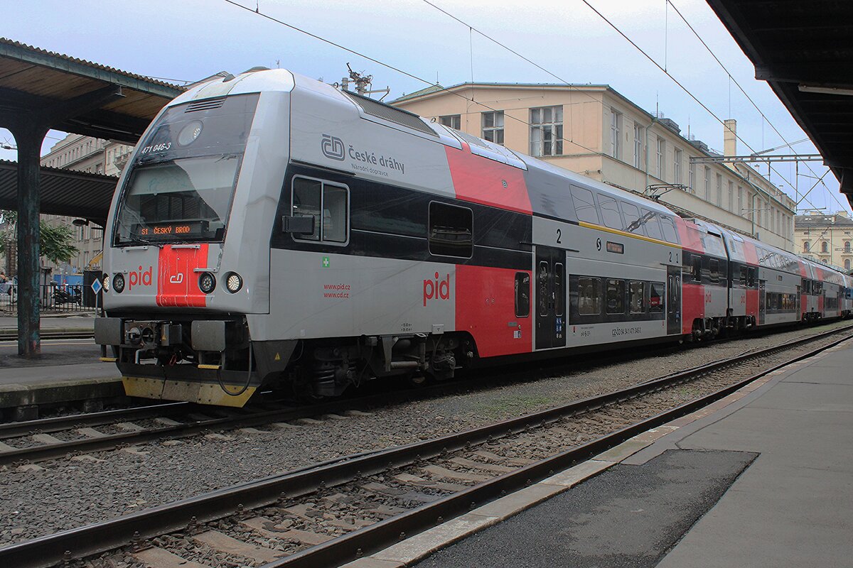 CD 471 067 (noch immer in Najbrt-II Farben) steht am 26 September 2025 in das in Umbau befindeter Bahnhof von Praha-Masarykovo.